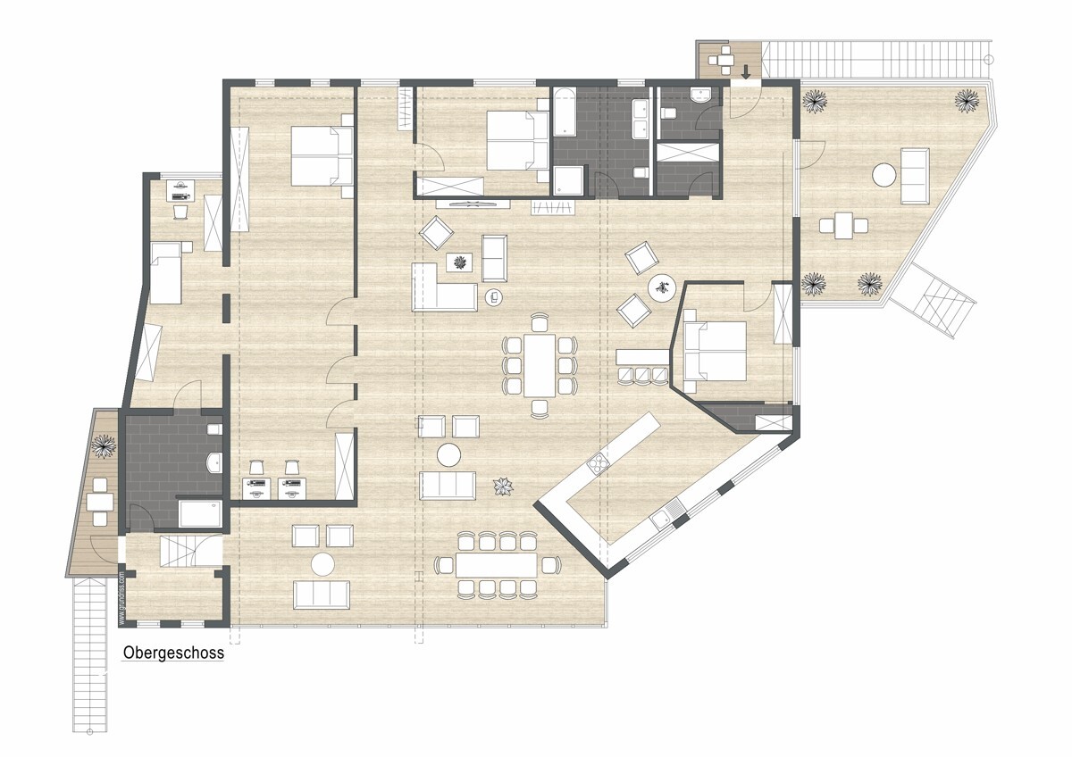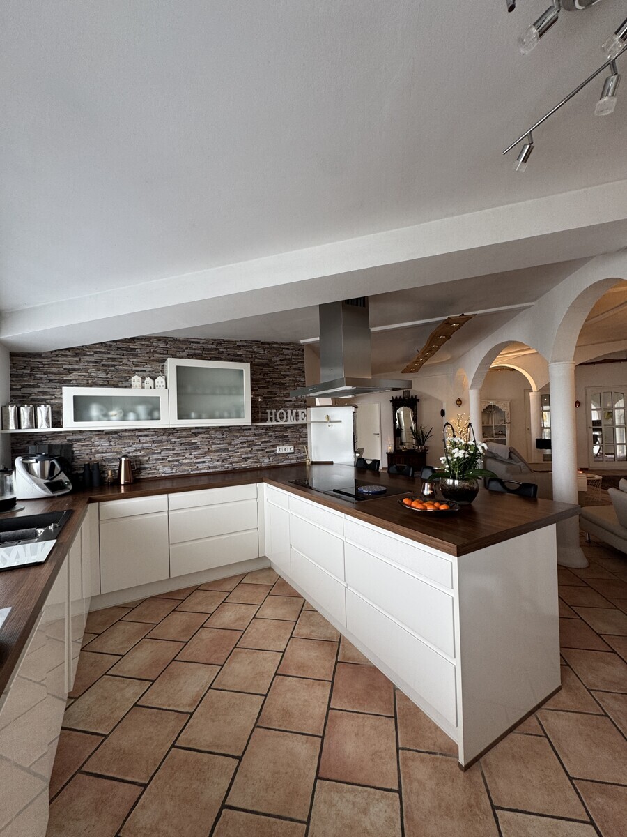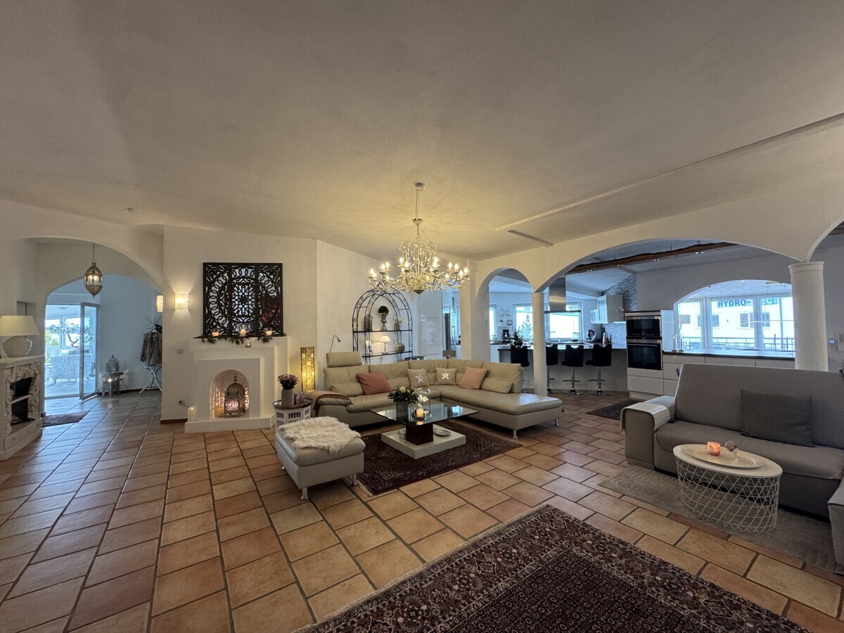 Doch nicht nur der geschäftliche Bereich überzeugt – das Wohnen hier ist ein Erlebnis für alle Sinne. Großzügigkeit, Licht und ausgesuchtes Design prägen jeden Winkel des privaten Wohnbereichs. Eine offene Luxusküche mit hochwertigen Geräten, edlen Materialien und direktem Übergang zum stilvollen Essbereich mit verglaster Front lädt zu geselligen Abenden und kulinarischen Genussmomenten ein.