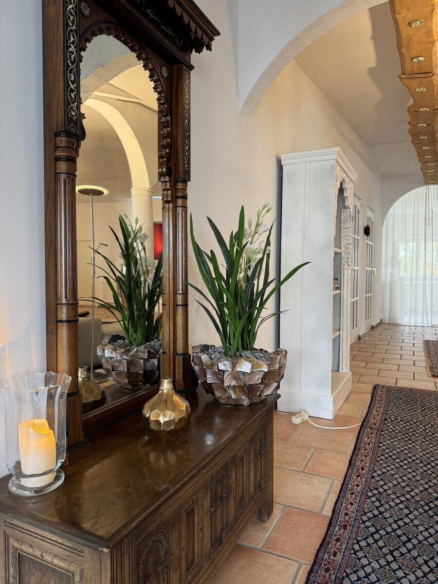 Das gesamte Interieur ist mit viel Liebe zum Detail gestaltet – geschmackvoll, individuell und harmonisch. Ein Hauch von Orient durchzieht das Wohnkonzept: Farben, Formen und Materialien schaffen eine Atmosphäre, die an „Wohnen wie in tausend und einer Nacht“ erinnert.