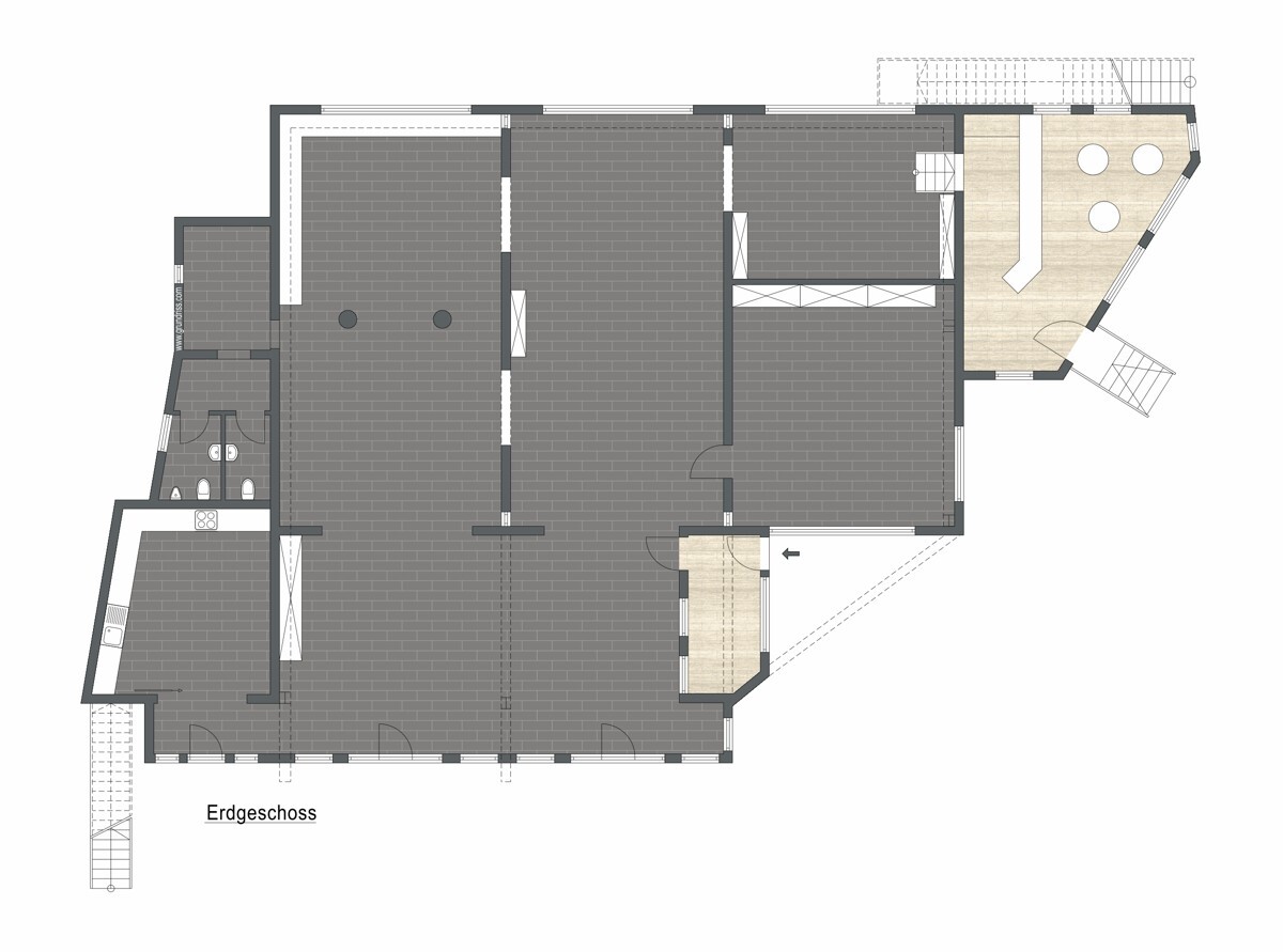 Die rund 340 m² große Gewerbefläche im Erdgeschoss beeindruckt durch ihre extra hohen Decken, eine besondere Raumwirkung und architektonische Raffinesse. Ob Atelier, Showroom, Praxis oder Büro – hier eröffnen sich für kreative Köpfe und Unternehmer vielfältige Nutzungsmöglichkeiten in einem exklusiven Ambiente, das sich deutlich vom Gewöhnlichen abhebt.